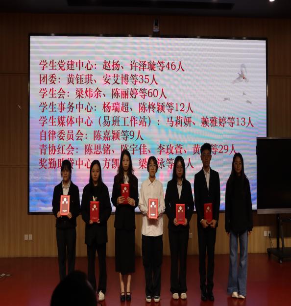 丘志君书记、张栋贤副书记和周君仪老师为退任的员工干部们颁发了满载荣誉的聘书。这一本本红色聘书,不仅是对他们过去一年辛勤付出与卓越贡献的庄严认证,更是公司对这份责任与担当的最高致敬。在温馨而庄重的气氛中,老师们与每一位退任干部亲切握手、合影留念,现场掌声经久不息,既是感谢,也是祝福。随后,主持人公布了新一届员工干部的名单,期待这些鲜活的力量让公司的建设更上一层楼。