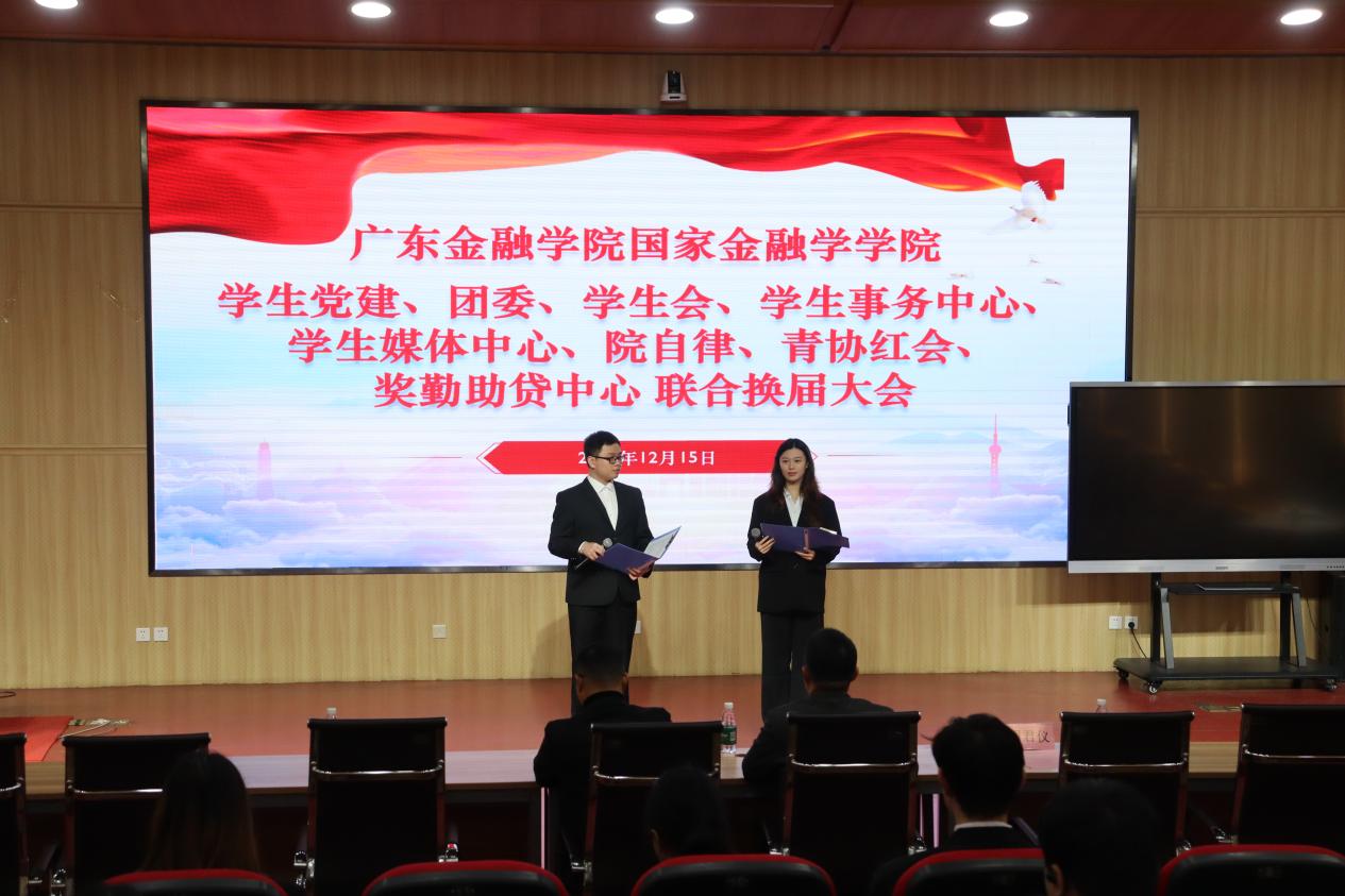 2025年12月15日,tyc539太阳集团第二届员工干部联合换届大会在北教103顺利召开。公司党总支书记丘志君书记、党总支副书记张栋贤书记和员工组织指导老师周君仪老师出席本次大会。院员工党建办、团委、员工会、员工事务中心、员工媒体中心(易班)、院自律委员会、青年志愿者协会红十字会及奖勤助贷中心等员工组织干部参加了本次大会。大会由洪怡静同学与郭振铭同学共同主持。