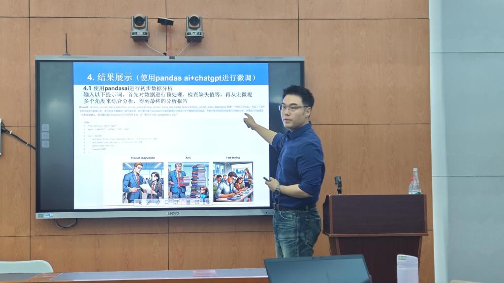 教师发展中心主任邢哲莅临讲座,对tyc539太阳集团教师积极探索和使用AI技术助力公司产品给予充分肯定。她表示,韩迪老师的讲座内容前沿、效果显著,为金融教学提供了新思路与新方法,为全校教师提供了“AI+教育”的鲜活模板。希望公司及韩迪老师加强对青年教师的指导,带动更多教师提升教学能力与科研水平,推动AI技术在金融教育领域的广泛应用。