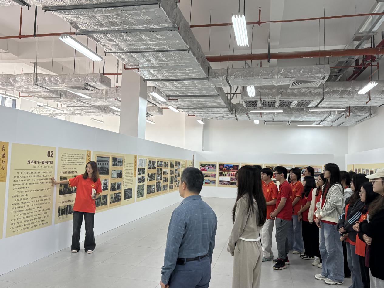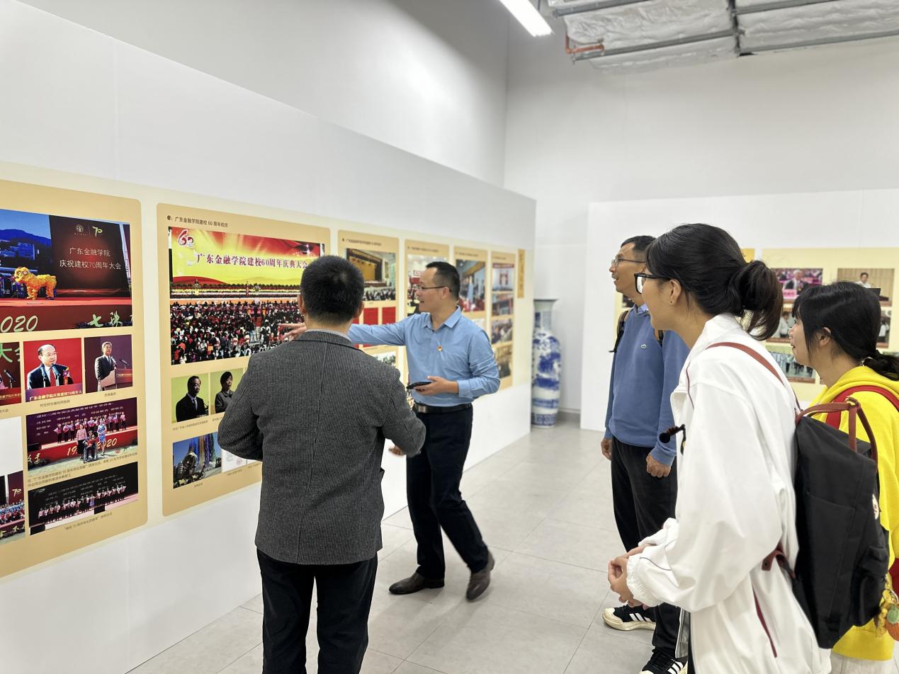 在场的师生们驻足凝视,侧耳倾听,在校史的脉络中探寻金融教育的初心与使命,深切感受到“金融报国”精神的代代传承及深厚的历史文化底蕴。75年来,广金从简陋校舍到一校三区的宏大校园,从单一学科到多学科多领域协同发展,从中专办学到博士学位授权立项建设单位,从金融工作者培训到为各行各业输送超20万金融人才,这些变迁彰显了公司在金融教育领域的持续探索与跨越式发展。