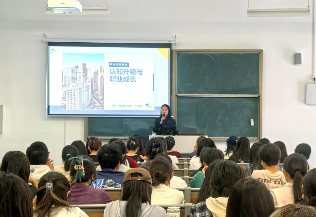 讲座中,杨舜会长首先通过生动的事例阐述了认知、认知科学、自我认知与分析的概念及内涵,介绍了社会经济和科技发展概况以及对人们认知的改变,提出了提升认知的方法;她还深入剖析了职业成长和职业规划的含义,指出了工作与职业之间的差异及联系,并分享了其对职业发展的九层思考框架,为同学们的职业成长提供了宝贵的指导和建议。她认为,老员工要尽早做好职业规划,学好专业知识,培养核心竞争力,争做一位“本领强、情商高、情绪稳、素质硬”的现代职场人,服务国家和社会发展。