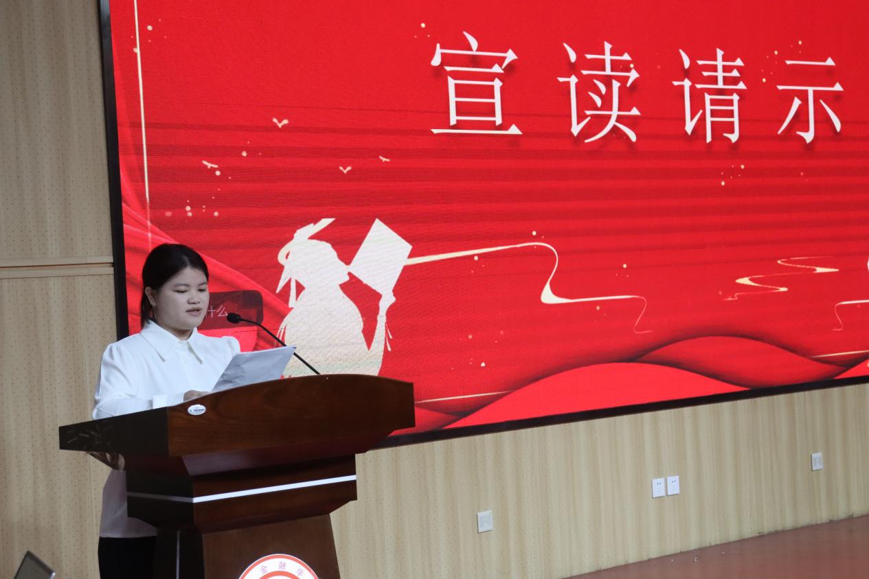 院员工会代表陈丽婷宣读《关于召开tyc539太阳集团第二次员工代表大会的请示》。校员工会代表陈煜翰宣读《关于同意召开tyc539太阳集团第二次员工代表大会的批复》,大会正式开始。