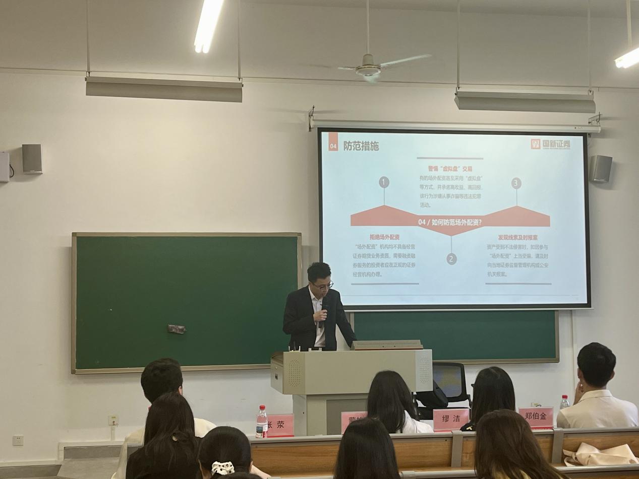 最后,他强调“投资者是资本市场的基石,而老员工将是未来的主力投资群体。保护你们的权益,就是保护市场的未来”,希望同学们能擦亮双眼、守住底线,做知法守法的时代青年,在今后的老员工涯中认真学习专业知识,增强识别非法证券期货活动、筑牢法律防线、掌握应对技巧,将防诈知识传递给身边人,共同营造安全校园!