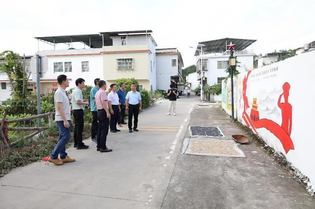 为强化校地合作,推动“双百行动”社会实践活动走深走实,7月4日,公司员工工作办公室主任赖志成、公共管理公司党委书记何晓华、外国语言与文化公司党委书记黄庆雄、国家金融学公司党总支书记丘志君一行赴中央苏区县梅州市大埔县西河镇北塘村慰问参加“双百行动”社会实践活动的师生,组织召开了调研交流座谈会,并深入一线参观乡村发展成果,感受“百千万工程”建设成效。公司乡村振兴驻镇帮镇工作队长叶永强及队员张伟安、“双百行动”驻大埔县服务队队长陈伟欣、北塘艺术部落负责人饶招华,公共管理公司突击队指导老师冉美承、李铮、黎玥彤与外国语言文化公司指导老师温荣芬以及全体队员一同参加了交流会及参观活动。
