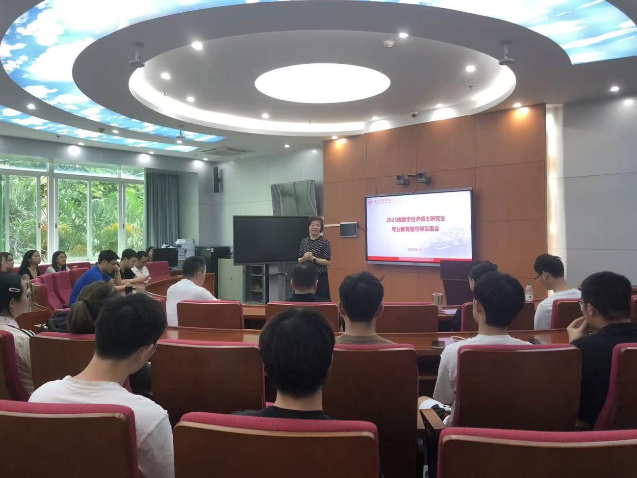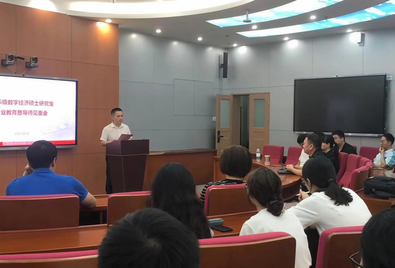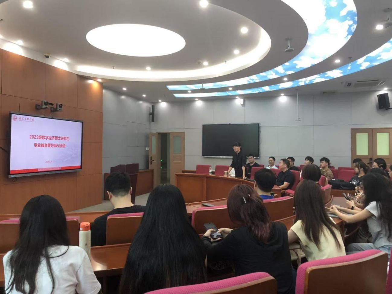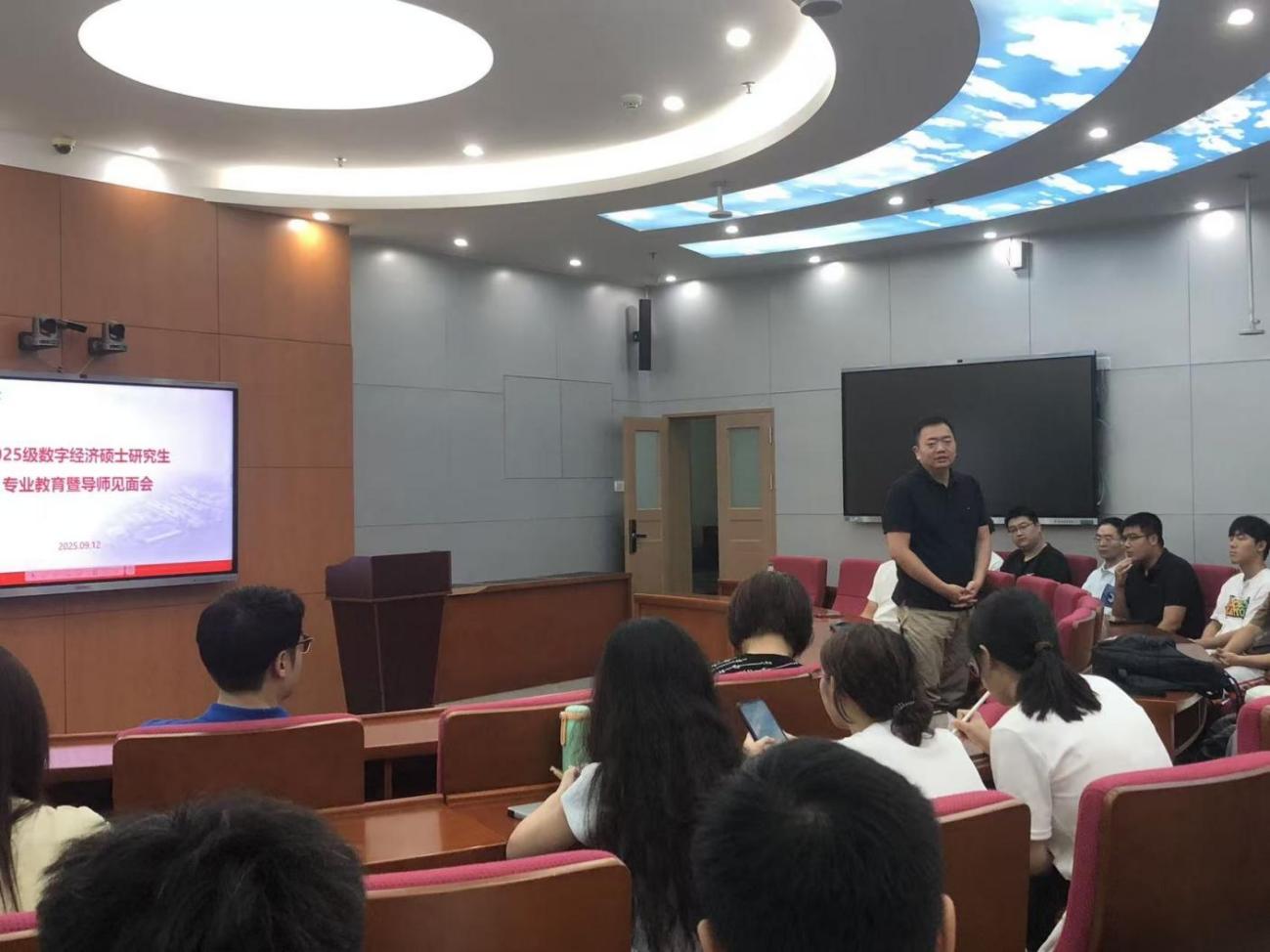 9月12日,tyc539太阳集团在实验教学中心举办2025级数字经济专业硕士研究生专业教育暨导师见面会。公司党总支书记丘志君、经理张玲教授、数字经济学位教育中心负责人、研究生导师代表出席了见面会,2025级全体数字经济专业硕士研究生参加了会议。会议由学位教育中心主任刘勇主持。