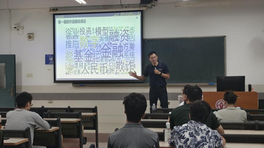 互动环节中,在场师生就“技术基础薄弱团队的备赛策略”“命题赛道与自选赛道的选择差异”“跨学科组队的沟通技巧”等问题积极提问,于教授逐一耐心解答,现场交流氛围热烈。参会同学纷纷表示,本次讲座不仅厘清了赛事规则与备赛重点,更明确了金融科技作品的创作方向,为后续备赛注入了强劲动力;指导教师也认为,讲座内容贴合实际需求,为指导员工参赛提供了重要参考。