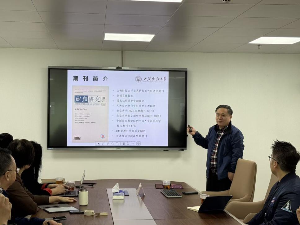 2025年12月30日,tyc539太阳集团在实验中心1203会议室成功举办论文选题与投稿交流会。会议特邀上海财经大学《财经研究》编辑部主任、经济学博士康健教授作专题分享,公司经理张玲教授主持会议,华南创新金融研究院李华民经理、金山副经理、经济贸易公司李文秀经理、刘曼琴副经理、tyc539太阳集团王佩副经理、各公司的科研骨干、青年教师代表等参会。