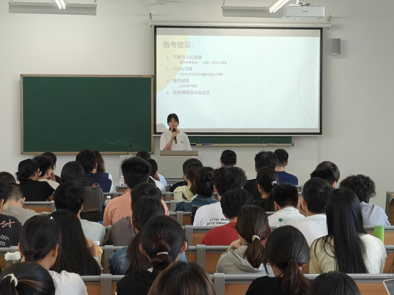 会上,2024届优秀毕业生代表庄佳怡(考取华南师范大学金融-数量金融与量化投资方向专业)分享了考研的心路历程和备考策略,鼓励学弟学妹们要早规划、早行动,不断提升自己的学术水平和综合素质。