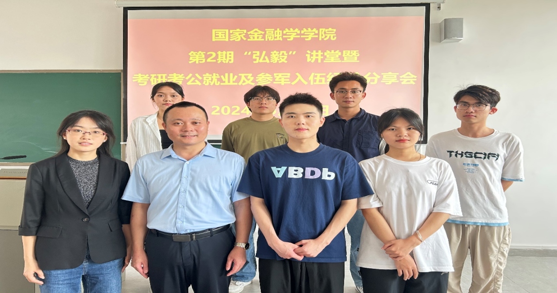 5月24日,由国家金融学公司党总支主办、高校多校区员工工作“一体化”研究工作室协办的第2期“弘毅”讲堂暨考研考公就业及参军入伍经验分享会在清远校区北教420室举办。公司党总支副书记张栋贤、清远校区辅导员潘芮及郭晶老师出席分享会。分享会由员工党建中心何维仪同学主持。