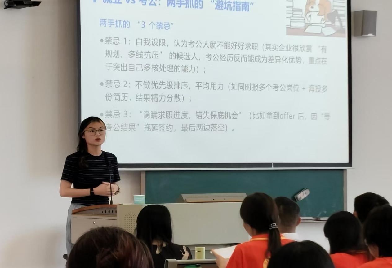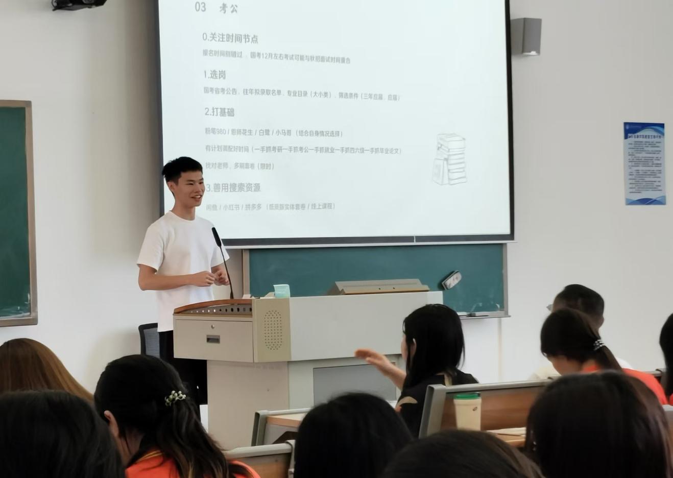为发挥优秀学子的示范作用,引领在校员工明确个人发展方向,并科学合理地规划职业生涯,2025年4月29日,由国家金融学公司党总支主办、高校多校区员工工作“一体化”研究工作室及新时代“大思政”育人工作室共同协办的校园文化巡礼之第9期“弘毅”讲堂暨考研考公就业及参军入伍经验分享会在清远校区北教113成功举办。公司党总支副书记张栋贤、辅导员彭妍年出席活动,来自tyc539太阳集团、金融与投资公司100多名2023级、2024级员工聆听了分享会。分享会由谢妙津同学主持。