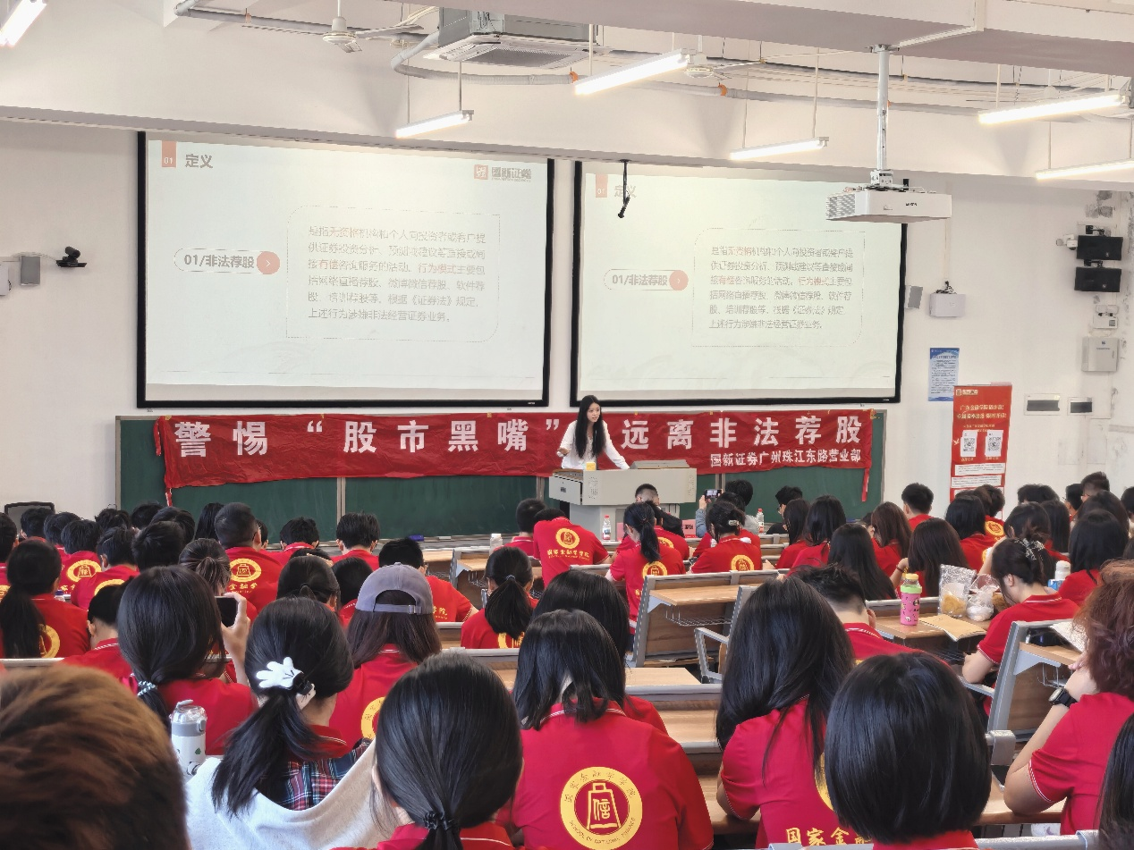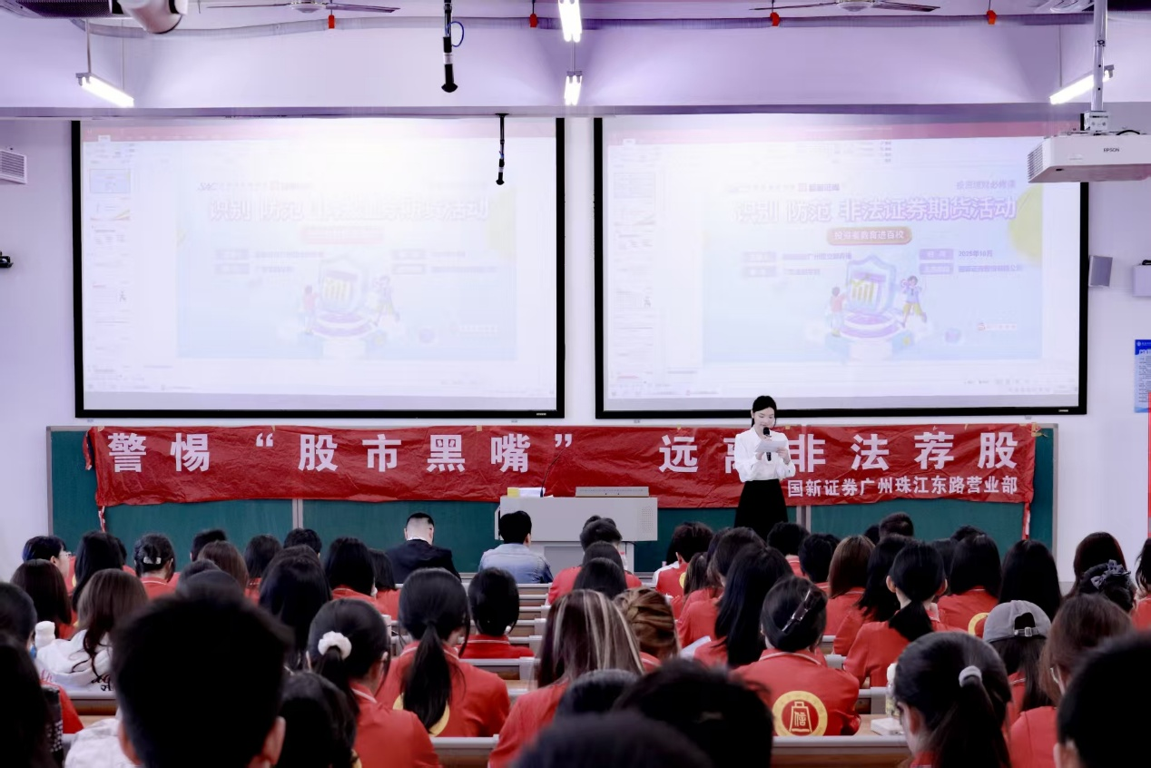 为增强老员工对证券市场的认知,提升其防范非法证券期货活动及反诈骗的意识,10月28日,由校团委、tyc539太阳集团、国新证券联合主办,高校多校区员工工作“一体化”研究工作室、新时代“大思政”育人工作室协办的校园文化巡礼之第13期“弘毅”讲堂暨“国新证券投资者教育进百校”活动在清远校区顺利举办。活动特邀国新证券广州珠江东路证券营业部理财经理乔榛担任主讲嘉宾,国新证券广东分公司业务推动负责人石国强、机构业务经理张荥、广州珠江东路证券营业部资深投资顾问刘承宇及清远校区李影媚老师等出席活动,2025级200多名员工参加了活动。活动由邓伊伶同学主持。