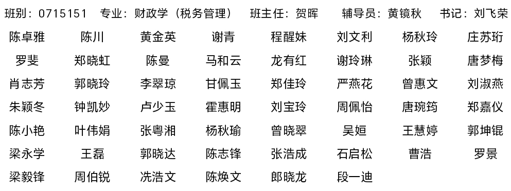 2007级财政学(税务管理)专业员工名录