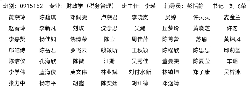 2009级财政学(税务管理)专业员工名录