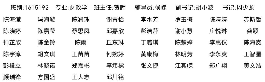 2016级财政学专业员工名录