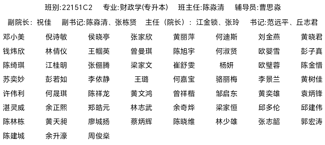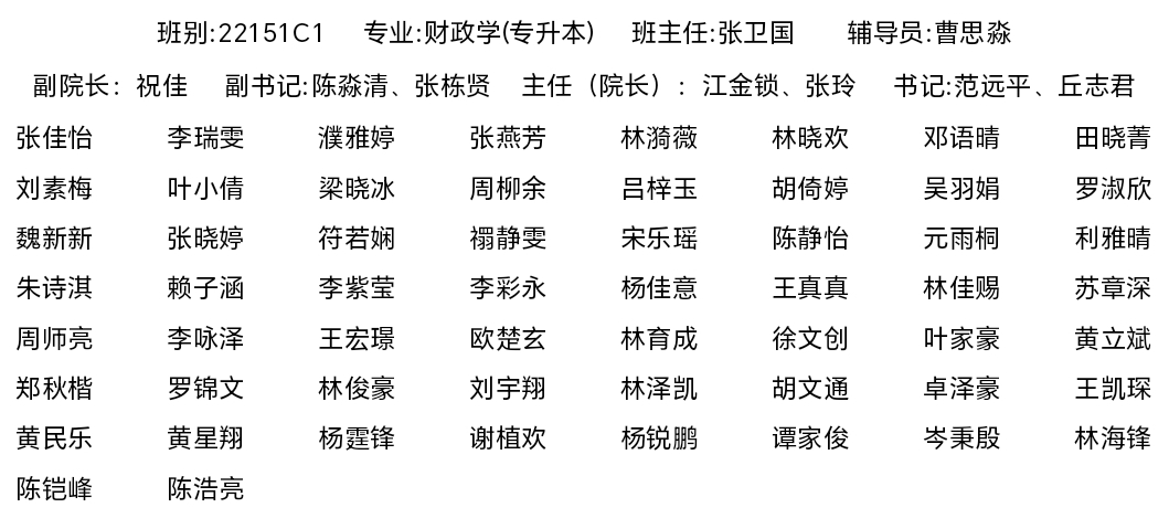 2022级财政学(专升本)专业员工名录